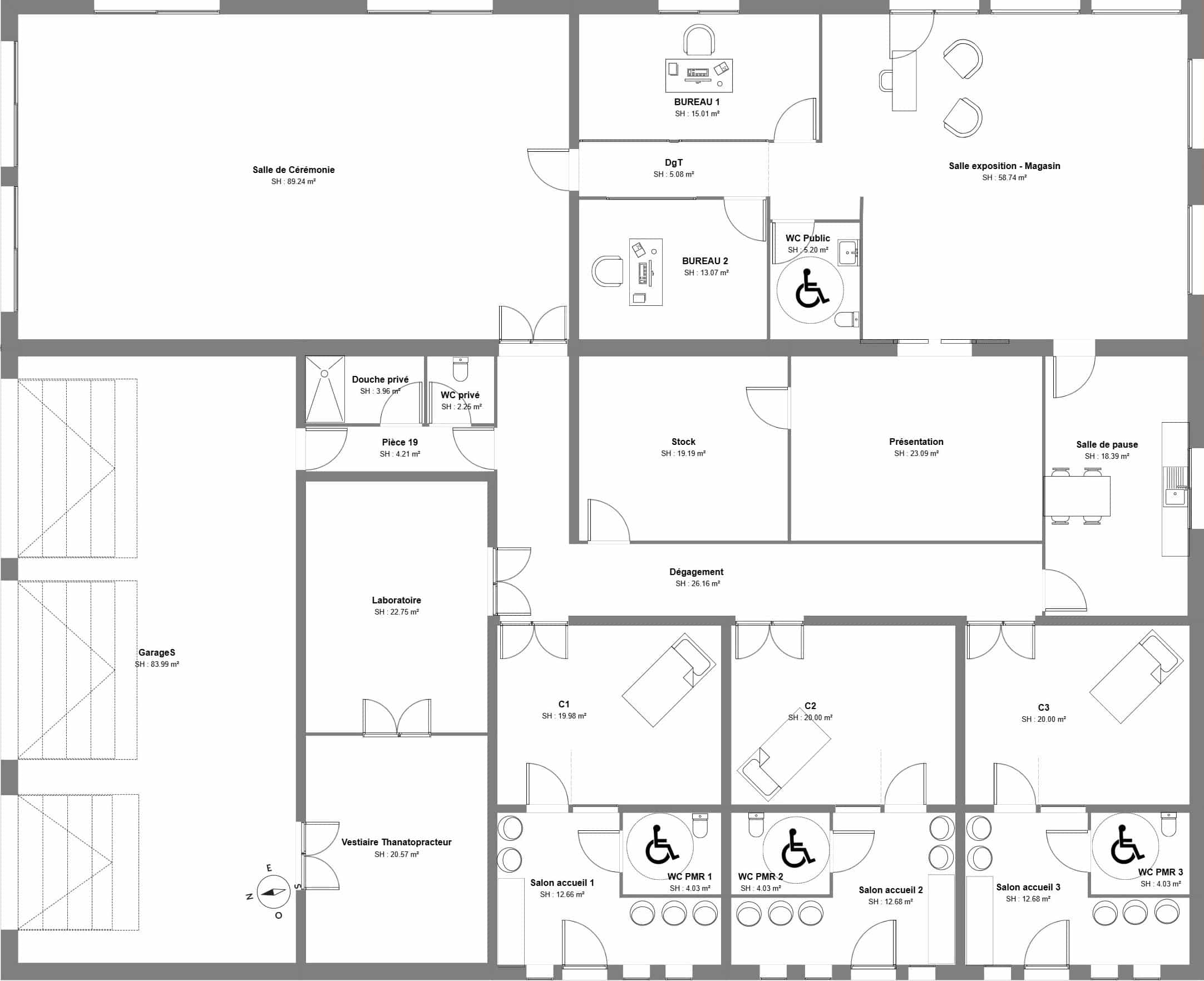Le plan de ce funérarium a été conçu par les équipes InterPro. L’entrée du funérarium a été conçue comme un lieu d’accueil chaleureux et accessible à tous, y compris aux personnes à mobilité réduite (PMR). Véritable salle d’exposition, cette pièce principale est baignée de lumière naturelle, intégrant des bureaux cloisonnés pour conserver le calme et l’intimité. L’ergonomie de ces espaces vise à rassurer les familles dès leur arrivée, tout en facilitant le travail des agents d’accueil.